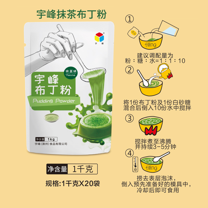 1.先把500ml水燒至沸騰,調至小火,倒入5g果糖和抹茶布丁粉50g,攪拌到無顆粒,小火2分鐘后關火。